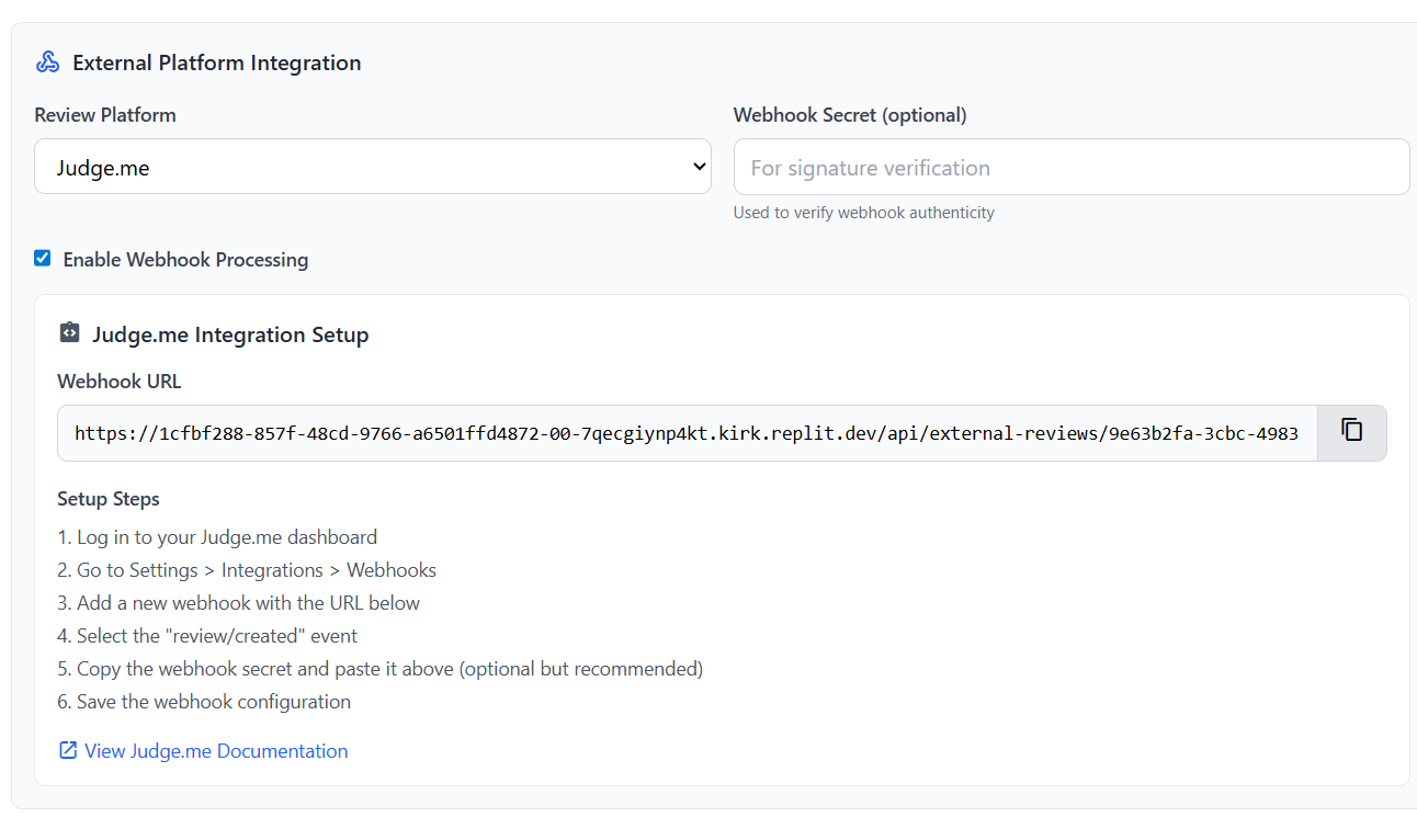 Add the Webhook to Your Review Platform: